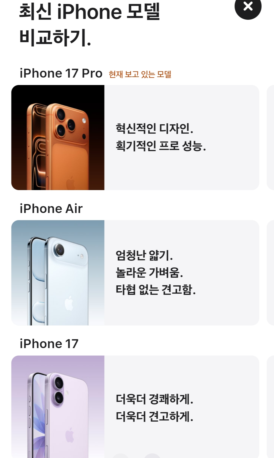 - 밝기 / 야외 사용 / 화면 선명도: 아이폰17의 높은 야외 밝기와 ProMotion 120Hz가 시인성에서 매력적입니다.